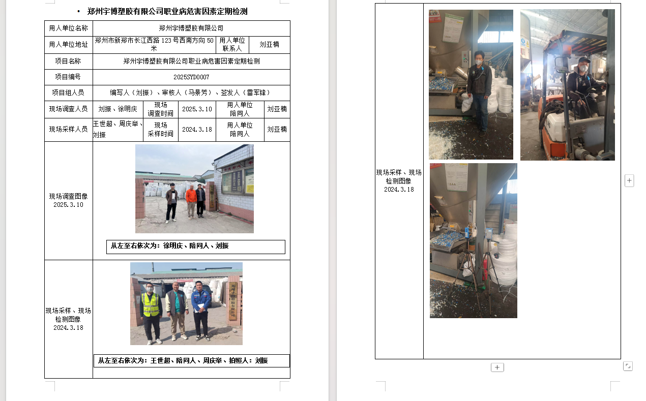 定期检测报告 | 郑州宇博塑胶有限公司 | 2025-04-02