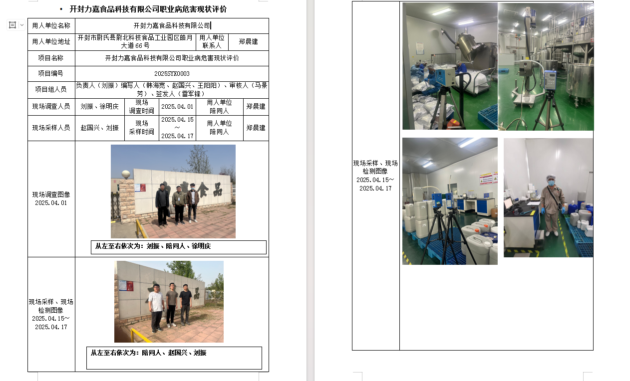 现状评价报告 | 开封力嘉食品科技有限公司 | 2025-05-19
