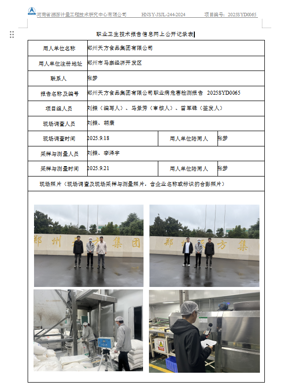 定期检测报告 | 郑州天方食品集团有限公司 | 2025-10-11