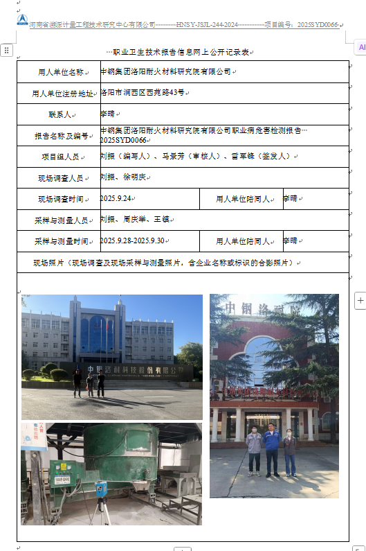 定期检测报告 | 中钢集团洛阳耐火材料研究院有限公司 | 2025-10-20