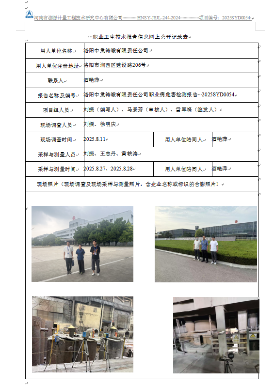 定期检测报告 | 洛阳中重铸锻有限责任公司 | 2025-10-16