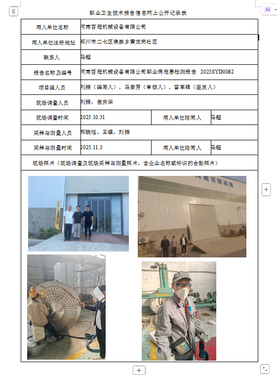 定期检测报告 | 河南百冠机械设备有限公司 | 2025-11-17