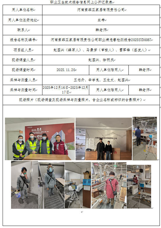 定期检测报告 | 河南索菲亚家居有限责任公司 | 2025-12-26