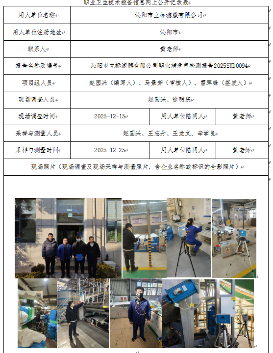 定期检测报告 | 沁阳市立标滤膜有限公司 | 2026-01-14