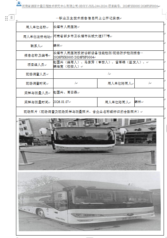 定期检测报告 | 长垣市人民医院 | 2026-01-16