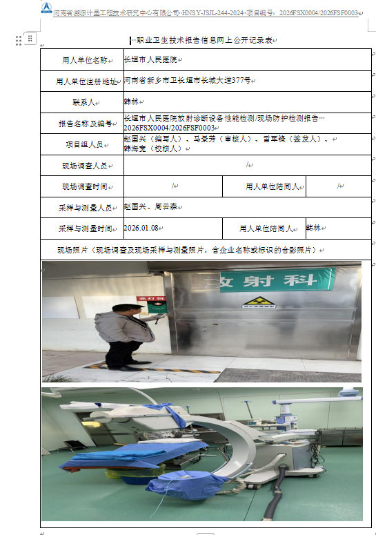 定期检测报告 | 长垣市人民医院 | 2026-01-16