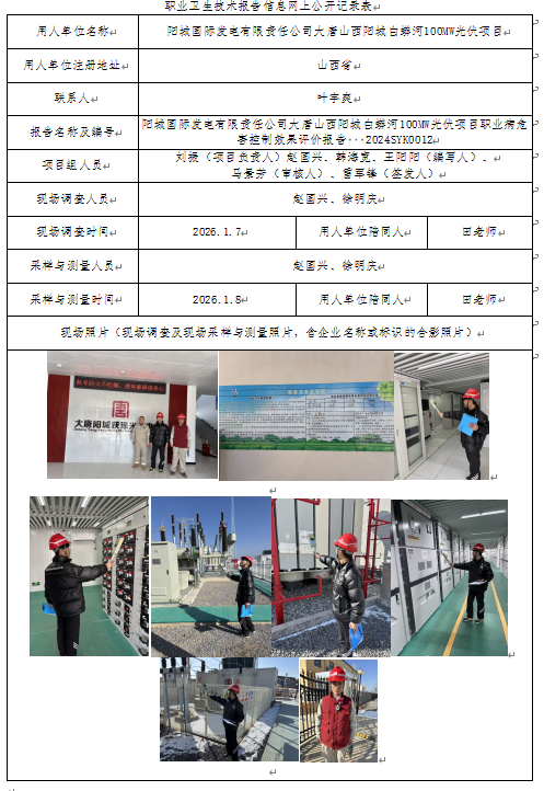控制效果评价报告 | 阳城国际发电有限责任公司大唐山西阳城白蟒河100MW光伏项目 | 2026-01-29